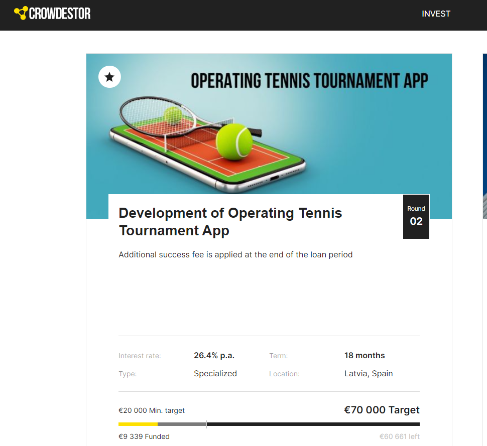 Crowdestor est une plateforme de prêt P2P basée à Riga. La plateforme propose un projet d’entreprise avec un taux d’intérêt de 9 à 23 % par an (ou plus).